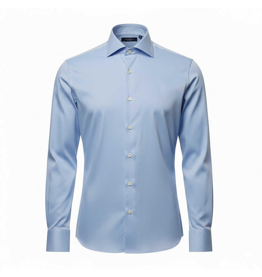 Detalles de Distinción: Cuello clásico estructurado, botones finos en tono nacarado y puños elegantes que refuerzan su carácter formal.